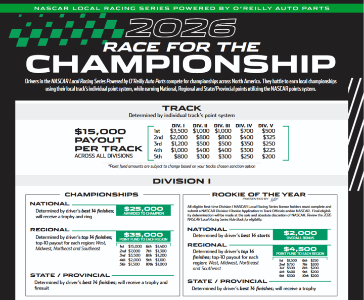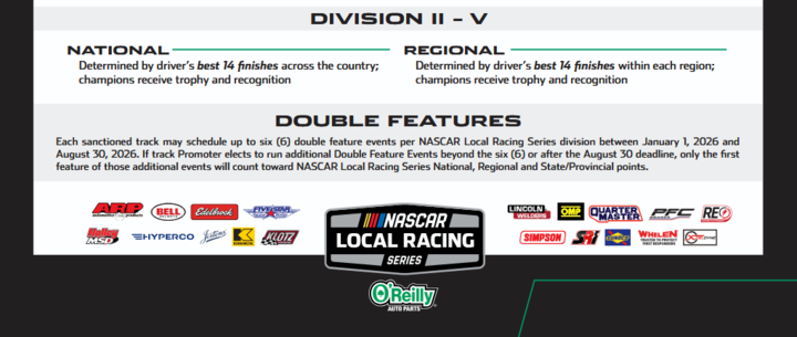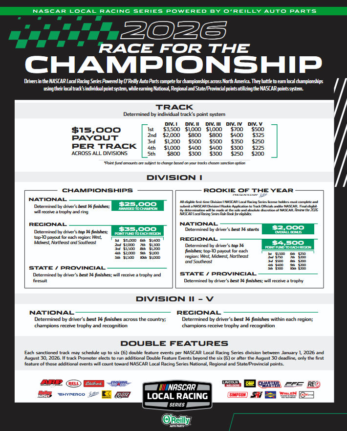 A NASCAR license is mandatory for all of the above divisions including driver & car owner.